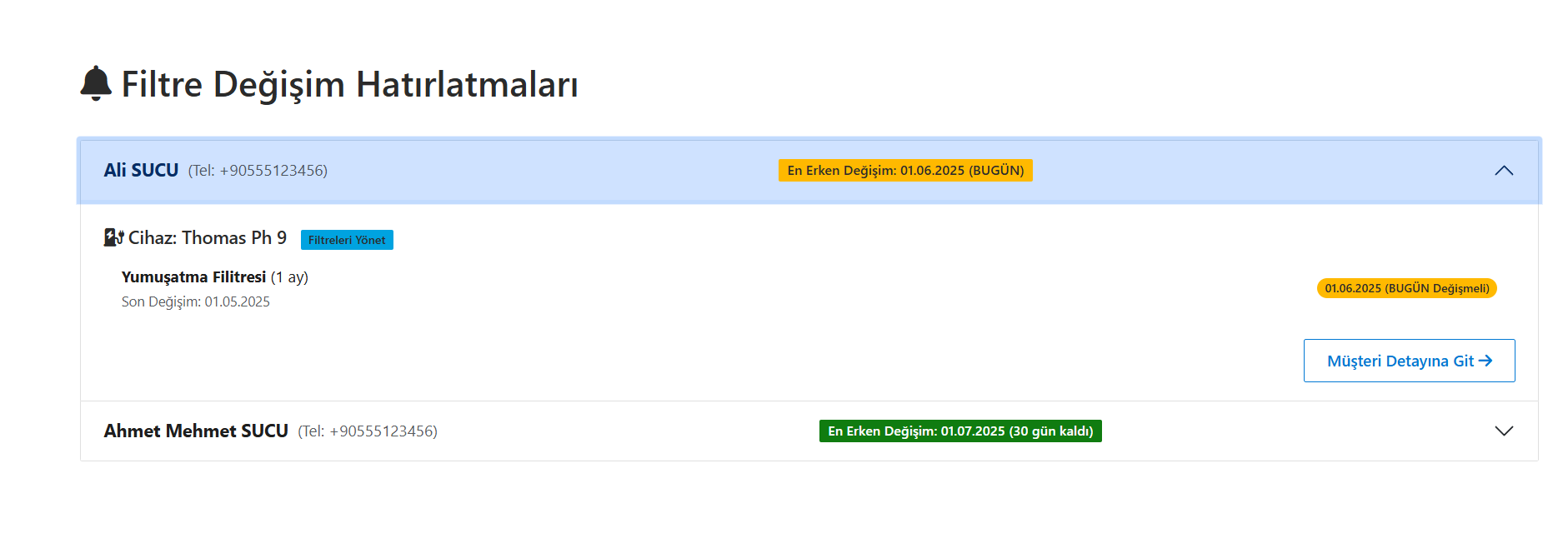 Filtre Değişim Hatırlatmaları - AquaTakip Ekran Görüntüsü